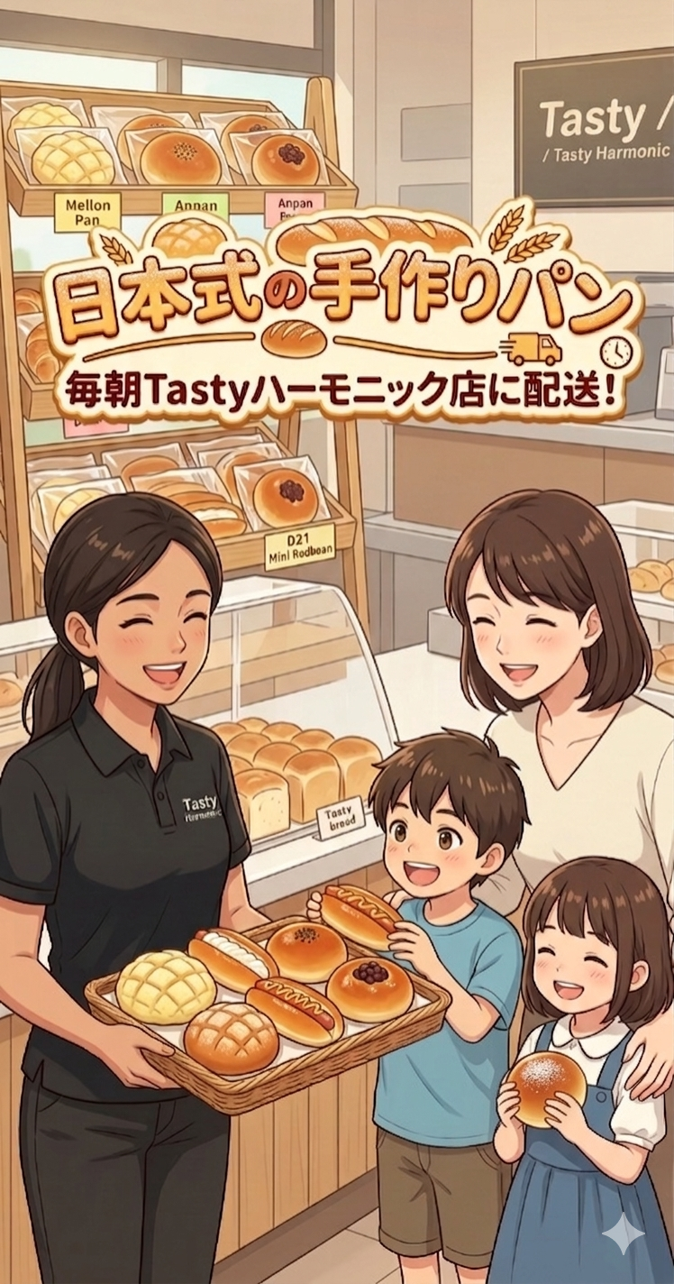 ※こちらの日本式の手作りパンは、Tastyハーモニック店のみで販売しています。